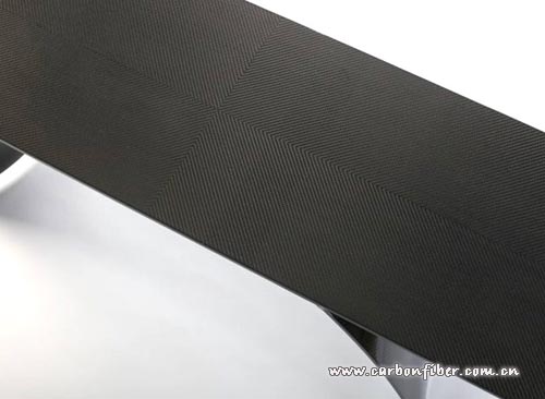 碳纖維茶幾內(nèi)部的是蜂窩結(jié)構(gòu),外面是3K斜紋碳纖維與環(huán)氧樹(shù)脂浸漬而成。 整體重量只有13磅。接合處鑲嵌激光刻的富勒公司設(shè)計(jì)的不銹鋼獎(jiǎng)?wù)拢鑾啄_部嵌有6061鋁與硅橡膠墊腳,以確保移動(dòng)的時(shí)候能夠充分保護(hù)地板。