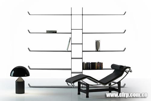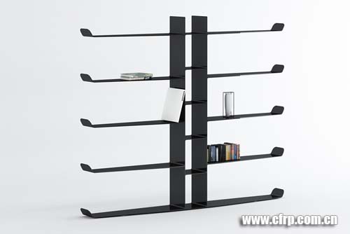 aliante書架是奧林巴斯主辦的2012年碳纖維設(shè)計大賽的金獎作品,靈感主要來自于飛機、飛翔的翅膀,書架采用輕薄但強度很好的碳纖維,整體造型呈現(xiàn)與一般木質(zhì)書架不一樣的輕盈飄逸的時尚感。如果將碳纖維這材料大面積的用在家具設(shè)計中,可能會給家具帶來顛覆性的變化。