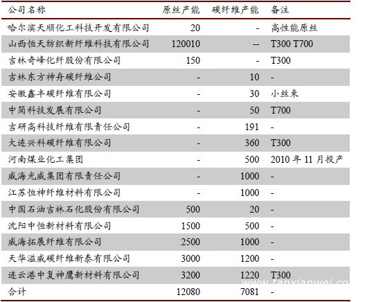 表3:國內(nèi)碳纖維廠商產(chǎn)能統(tǒng)計(jì)(噸)