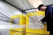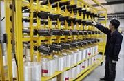 工人在碳纖維復(fù)合芯導(dǎo)線生產(chǎn)線上緊張工作。江蘇連云港中復(fù)碳芯電纜科技有限公司是專業(yè)從事碳纖維復(fù)合材料芯導(dǎo)線開發(fā)和生產(chǎn)的企業(yè),第一條碳纖維復(fù)合芯導(dǎo)線生產(chǎn)線目前已經(jīng)成功投產(chǎn),年生產(chǎn)能力達(dá)到2萬公里,填補(bǔ)了碳纖維電纜在國內(nèi)電力領(lǐng)域大規(guī)模應(yīng)用的空白。