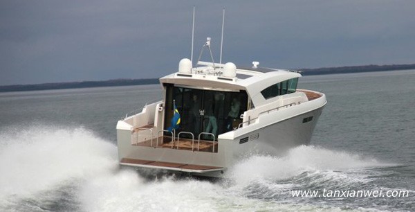 這艘由瑞典Delta Powerboats公司推出的Delta 54 Carbon Cruiser豪華游艇,材質(zhì)近似蘭博基尼超級(jí)跑車,重量比同型游艇減輕三成,但航行速度更快,將為中國玩家?guī)碓诤I像{駛超級(jí)跑車般的暢快感覺。
