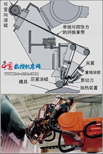 機床,預浸料帶一般呈硬挺狀態(tài),通常只允許在很小的范圍內(nèi)變形。