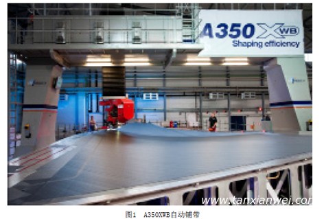 自動(dòng)鋪帶主要適用于尺寸較大,曲率較為平緩的機(jī)翼、尾翼等翼面類結(jié)構(gòu)。經(jīng)過40多年的發(fā)展,自動(dòng)鋪帶技術(shù)在歐美國(guó)家已經(jīng)成熟,并大規(guī)模應(yīng)用于航空復(fù)合材料結(jié)構(gòu)件的制造,如波音777飛機(jī)機(jī)翼、水平和垂直安定面蒙皮,C-17運(yùn)輸機(jī)的水平安定面蒙皮,波音787機(jī)翼蒙皮,A330和A340水平安定面蒙皮,A340尾翼蒙皮,A380的機(jī)翼蒙皮和安定面蒙皮,A350機(jī)翼蒙皮和中央翼盒,A400M機(jī)翼蒙皮等。A400M機(jī)翼大梁采用的是自動(dòng)鋪帶加熱隔膜成型工藝。圖1為A350XWB自動(dòng)鋪帶設(shè)備。 123,123