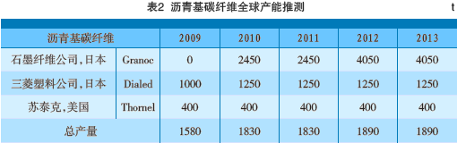 總之,PAN基碳纖維(大絲束和小絲束)的產(chǎn)能在2010~2013年將期望增長24%(77650~96000t,見表1)。鑒于瀝青基碳纖維市場已經(jīng)較為成熟,所以產(chǎn)能變化很?。ㄒ姳?)。