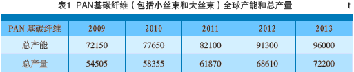 聚丙烯腈(PAN)原絲是制備碳纖維最主要的原料。對于“小絲束”(小于24K),2010年產(chǎn)能約為57650t,2013年為71000t。由于這些產(chǎn)能僅僅是名義上的產(chǎn)量,并不代表實際產(chǎn)能,因此采用了產(chǎn)量系數(shù)進行校正。