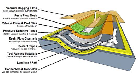 在目前的材料中,復合材料因其質(zhì)輕高強而被廣泛應用。針對復合材料的制造工藝也在不斷的提高和創(chuàng)新。由起初的手糊,發(fā)展到機械化的噴射,拉擠,模壓等工藝,都現(xiàn)在興起的真空導入工藝,與真空導入相關的工藝還有樹脂傳遞模塑(RTM),真空輔助RTM (VARTM),真空袋壓,SCRIMP,SRIM(Structural Reaction Molding),RTI(resin film infusion).但都有一些差別,很多文章中都介紹過,這里就不贅述了。