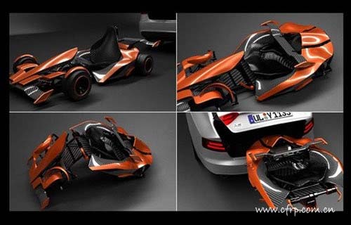 盡管卡丁車有這么多的好,但是我們在現實生活中駕駛卡丁車的時候,總是會有些失望。簡陋的外形甚至可以說沒有任何造型可言,臟兮兮的兩沖程發(fā)動機散熱片上掛滿了油污,或許唯一干凈的就是后軸上的那個锃光瓦亮的剎車盤了!為什么不能有些好看的卡丁車出現在場地上呢?最近由美國佛羅里達洲的一位設計師卡丁車就綜合了卡丁車的一切優(yōu)點,同時又為卡丁車提供了全新的外觀設計,效果是相當不錯!