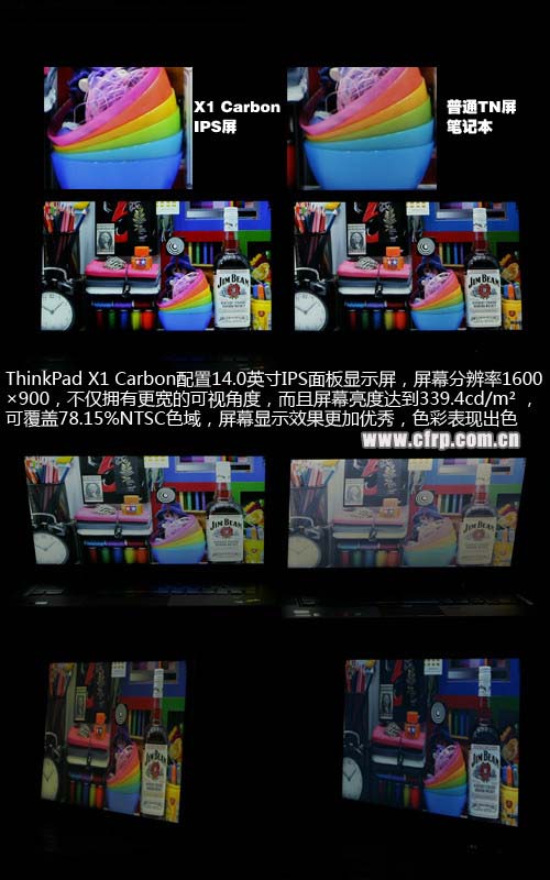 ThinkPad X1 Carbon配置14.0英寸IPS面板顯示屏,屏幕分辨率1600 ×900,不僅擁有更寬的可視角度,而且屏幕亮度達(dá)到339.4cd/m² ,可覆蓋78.15%NTSC色域,屏幕顯示效果更加優(yōu)秀,色彩表現(xiàn)出色,超過(guò)目前市面上95%以上的筆記本的顯示效果。