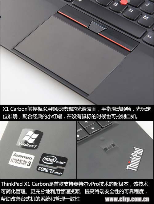 當(dāng)然作為一款專門(mén)面向商務(wù)用戶的產(chǎn)品,英特爾vPro是必不可少的一部分,該技術(shù)可簡(jiǎn)化管理、更充分地利用管理資源、提高終端安全性的可靠程度,幫助改善臺(tái)式機(jī)的系統(tǒng)和管理一致性。ThinkPad X1 Carbon是第一款支持英特爾vPro技術(shù)的超極本,所以我們把它定義為首款專門(mén)針對(duì)商務(wù)用戶打造的超極本,那么接下來(lái)我們就一起來(lái)詳細(xì)了解一下ThinkPad X1 Carbon。