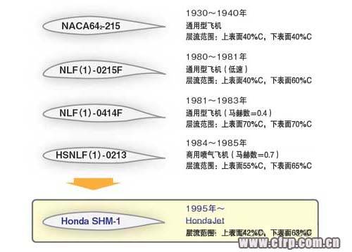 自然層流翼型的研究始於1930年代,但由於在高速飛機(jī)中使用時(shí)失速特性差,未能投入實(shí)用。為HondaJet開(kāi)發(fā)的自然層流翼型「SHM-1」從根本上調(diào)整翼型,解決了過(guò)去的課題。