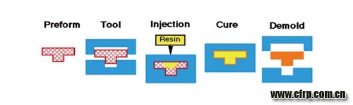 該工藝是將纖維經(jīng)預成型,預編織處理,纖維鋪放可設計,制品受力合理。預成型纖維體預先鋪放在模具型腔內(nèi),合模后通過設備用壓力將樹脂注入模腔,浸潤纖維,固化成型,閉模操作,不污染環(huán)境,采用多模,多工位機械注射模式,生產(chǎn)效率較高。需要樹脂灌注設備及多套模具,適于中等至大批量生產(chǎn)方式,制品雙面光,尺寸精度高,可做結(jié)構(gòu)復雜零件及鑲件,如汽車地板、車頂、發(fā)動機罩等,是汽車行業(yè)應用最廣泛的工藝。