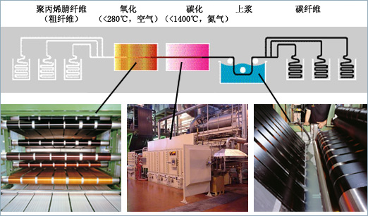 Carbon fibers are manufactured from PAN fibers by an industrial process. They are suitable for a wide range of applications. 碳纖維由聚丙烯腈纖維經過工業(yè)工藝制成,適用范圍廣泛: Production: