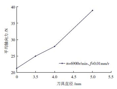 圖10為不同直徑的Y330( 涂層)刀具在相同鉆削參數(shù)下,鉆削碳纖維增強(qiáng)復(fù)合材料的平均軸向力曲線圖。