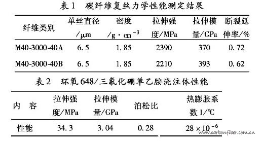 由于天線反射面必須能夠反射電磁波,蜂窩夾層結(jié)構(gòu)復(fù)合材料中面板材料必須由導(dǎo)電材料制成。碳纖維具有良好的導(dǎo)電性能,且具有良好的力學(xué)性能沿高模量碳纖維軸向的熱膨脹系數(shù)為-0.7x10-6/℃,而其垂直于纖維方向的熱膨服系數(shù)為23x10-6/℃。它具有明顯的各向異性特點(diǎn),可通過工藝設(shè)計(jì),滿足各種天線反射面的性能要求。實(shí)踐表明碳纖維是天線反射面面板材料的理想選擇之一。Kevlar-49纖維同樣具有良好的力學(xué)性能,從結(jié)構(gòu)性能角度考慮也是天線面板材料的理想選擇。但由于其不導(dǎo)電,當(dāng)用于天線反射面時(shí),必須對(duì)其反射表面進(jìn)行金屬化處理。由此可知,天線反射面的結(jié)構(gòu)設(shè)計(jì)與所用材料性能有著密切的關(guān)系。選用不同的材料會(huì)使天線反射面的結(jié)構(gòu)特性有很大的差異,為了滿足C波段天線結(jié)構(gòu)的設(shè)計(jì)要求,在進(jìn)行了大量的材料性能試驗(yàn)的前提下,最終選用材料的性能測(cè)試結(jié)果列于表1至表5中。