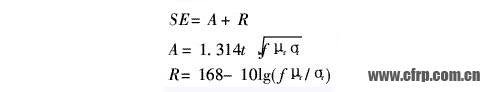 根據(jù)Schelkunoff電磁屏蔽理論,材料的電磁屏蔽效能SE由吸收損耗A、反射損耗R和內(nèi)部反射損耗B組成。當A大于10dB時,B可以忽略,則屏蔽效能是A和R之和,用公式表示為: