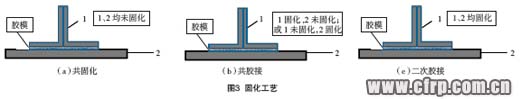(4)分析制件的成型工藝方法,是共固化、共膠接還是二次交接(圖3)。共固化中,所有層為濕鋪層一次進(jìn)罐,需要較多模具組合到一起同時(shí)使用,通常整套模具較復(fù)雜;共膠接為干濕件進(jìn)罐固化,需要一部分零件的成型模具,及已固化零件與濕鋪層二次進(jìn)罐固化的模具;二次膠接時(shí)所有零件已固化,通過膠膜把他們固化到一起,需要所有零件的成型模以及二次膠接的定位模具。