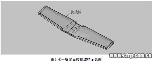 (6)水平安定面由上下蒙皮與翼梁采用二次膠接形成整體結(jié)構(gòu),升降舵蒙皮采用碳纖維與蜂窩夾層結(jié)構(gòu),端肋采用碳纖維復(fù)合材料層壓結(jié)構(gòu)件,梁、蒙皮和端肋采用二次膠接成一個整體,如圖5所示。