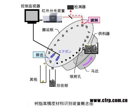 三菱電機(jī)和島津制作所于2012年12月19日宣布,共同開(kāi)發(fā)出了“再利用樹(shù)脂高精度成分識(shí)別技術(shù)”,能夠在廢舊家電循環(huán)再利用工序中以99%以上的精度瞬間識(shí)別出回收的樹(shù)脂的品種。該技術(shù)通過(guò)向搬運(yùn)板上的樹(shù)脂碎片照射波長(zhǎng)比近紅外光長(zhǎng)的中紅外光,然后分析其反射光來(lái)識(shí)別樹(shù)脂的品種。