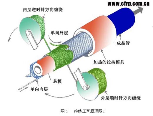 其工作原理是先拉,形成單向里層;環(huán)向纏繞,增加徑向強(qiáng)度;單向拉擠,形成較光滑的外壁。