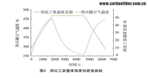 本文以柱支撐形式建立大型復(fù)合材料固化工裝模型,在保證工裝結(jié)構(gòu)靜力剛度的前提下,計(jì)算得到工裝在熱壓罐固化工藝過程中的溫度場分布,然后把重力載荷,施加到帶有溫度值的有限元模型上進(jìn)行工裝的熱- 結(jié)構(gòu)耦合分析。得到結(jié)論如下: