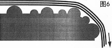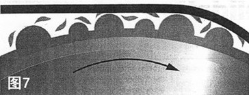 德國TOPOCROM公司開發(fā)了適用于碳纖維加工過程的導(dǎo)絲輥和其元件(圖2)。一般的羅拉在導(dǎo)絲過程易產(chǎn)生斷絲(圖3)或毛絲(圖4),由此常發(fā)生中斷現(xiàn)象,而該公司設(shè)計(jì)的羅拉表面如圖5所示,絕對(duì)無銳邊并形成“軟”形態(tài)(圖6),在絲束行進(jìn)過程形成氣墊而有利于更好滑動(dòng)(圖7),總之,它適用于加工碳纖維、芳綸、玻纖、陶瓷纖維及玄武巖纖維,而且具有高耐磨和耐腐蝕性、壽命長、均勻的表面結(jié)構(gòu)而有利于纖維的緩和處理,可達(dá)到最佳拉伸狀態(tài)、滑動(dòng)性良好,并具有良好的緩沖和減震作用。