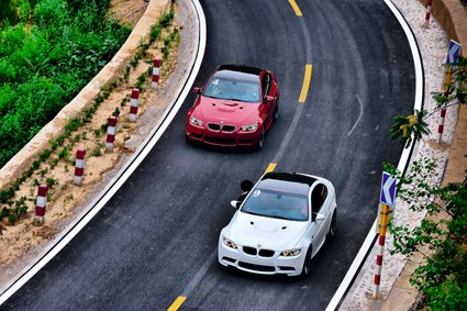 坦白的說,今天的寶馬M3雙門轎跑車碳纖維車頂版和普通版M3試駕車幾乎沒有太多的變化。最大的不同之處就是把車頂?shù)慕饘黉摪鍝Q成了碳纖維硬頂;其次,這是一輛只跑過不到1000km的新車,輕易便可發(fā)揮出更為顯著的性能。由于車頂?shù)淖兓?,這臺(tái)寶馬M3的重量比普通版輕了5kg,而它的售價(jià)卻為此增加了5000RMB。遺憾之處則是為了性能,你不得不自動(dòng)放棄那個(gè)可以享受日光天窗。而我認(rèn)為,有了335i敞篷版和Z4的存在,M3完全沒必要用安逸展現(xiàn)自己的價(jià)值,BMW M藍(lán)盒子賦予它的精神是固化在血液和精神中的——走向輕量化的更高境界,碳纖維材質(zhì)是M生存的新標(biāo)準(zhǔn)?,F(xiàn)在,也隨之出現(xiàn)一個(gè)關(guān)鍵問題,對于頭頂上減輕的10斤重量,到底能否立竿見影?;蛘哒f,能否讓我直接感受到樂趣?