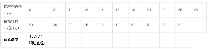配套植筋膠每公斤植筋數(shù)量(經(jīng)驗(yàn)值
